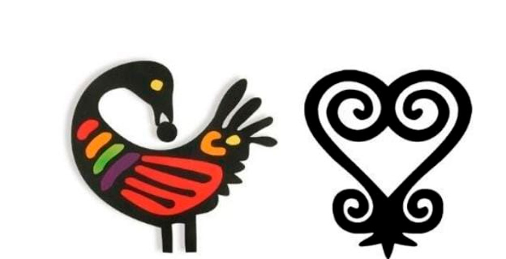 Sankofa pode ser representado como um pássaro mítico que voa para frente, tendo a cabeça voltada para trás, que carrega um ovo em seu bico, o futuro… também se apresenta como um desenho similar ao coração ocidental. Trabalha a sabedoria de olhar para o passado e a busca de algo que foi ignorado ou esquecido, trazendo para o presente, a fim de construir o futuro. Este símbolo faz parte de um conjunto.