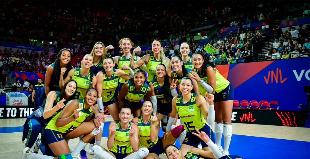 A Seleção Brasileira chega como uma das grandes favoritas ao ouro. Primeira colocada no ranking, venceu os 12 jogos da primeira fase da VNL, algo inédito na história da competição. Nunca uma equipe terminou invicta na primeira fase da competição.