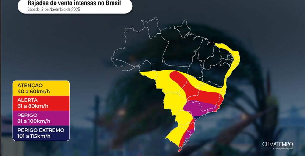 Em casos de ventos superiores a 100 km/h, há potencial para queda de árvores, destelhamentos, danos em redes elétricas e interrupções de energia. A Climatempo recomenda atenção redobrada e evitar áreas abertas durante tempestades.4