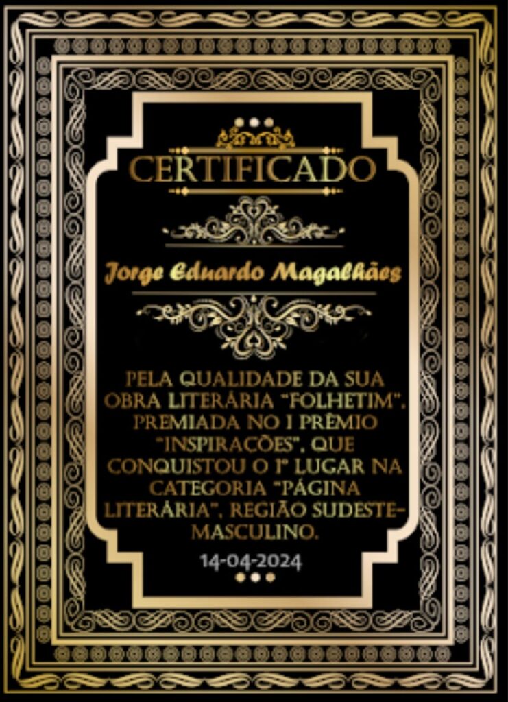 Jorge Eduardo Magalhães, who is currently teaching as a visiting professor at the University of Aswan, in Egypt, disseminating the Portuguese Language, Culture and Brazilian Literature, feels very honored with the award and encouraged to continue writing; because, little by little, it is reviving the feuilleton, which is a narrative genre widely used in newspapers from the 19th and mid-20th centuries.