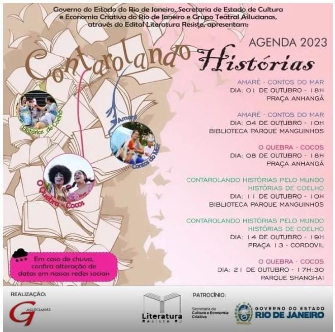 Grupo Teatral Aslucianas volta às praças da Zona Norte com força total com o projeto Contarolando Histórias, com apoio da Secretaria de Cultura e Economia Criativa e Governo do Estado do Rio de Janeiro.