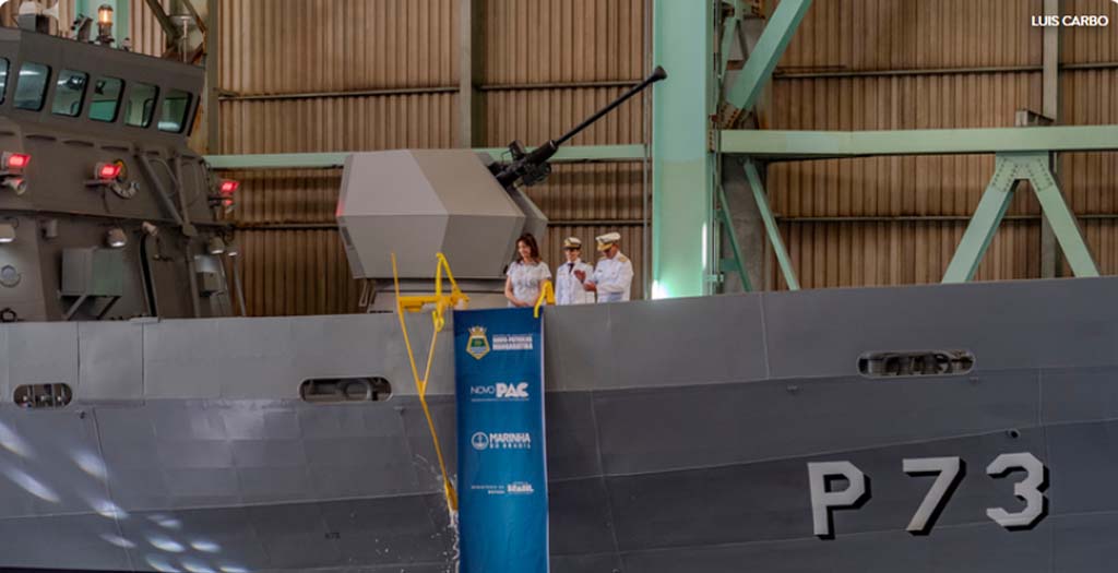 A Secretária-Geral da Defesa, Cinara Wagner Fredo, madrinha da embarcação, celebrou o simbolismo do batismo: “Mostra que estamos preparados para produzir navios desta qualidade”.