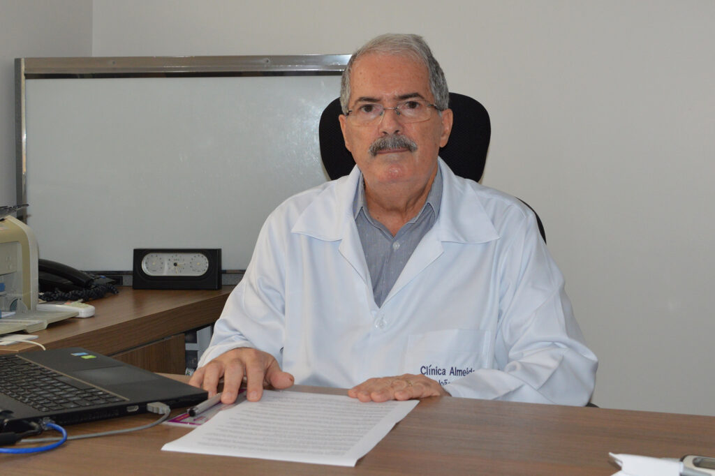 O médico pneumologista João Carlos Almeida, da Hapvida, aponta os riscos trazidos pelos dispositivos eletrônicos para fumar (DEF), cuja comercialização e propaganda são proibidas pela Agência Nacional de Vigilância Sanitária (Anvisa). Também chamados de “vape”, contêm nicotina e, como o cigarro comum, podem causar dependência e levar, por exemplo, a um ataque cardíaco.