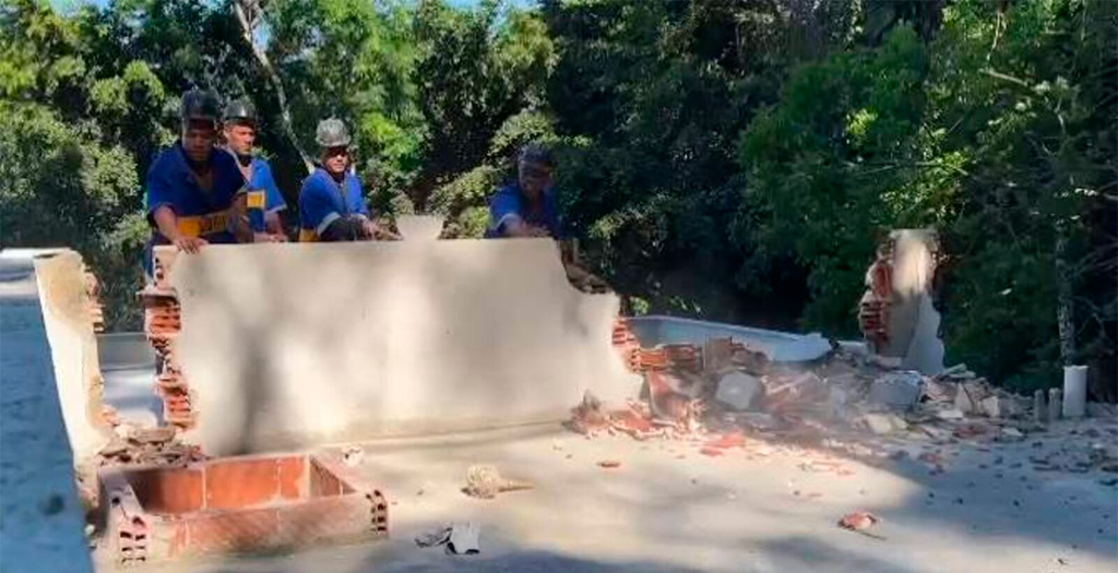 Os promotores de Justiça explicam que a Prefeitura já havia declarado o “condomínio” como loteamento irregular e embargado a construção de um prédio residencial no local, mas as obras continuaram agravando os danos ambientais. Apesar de realizar uma operação em conjunto com o Batalhão da Polícia Militar, o INEA devolveu a retroescavadeira apreendida aos próprios integrantes da milícia. À época, a Coordenadoria de Segurança e Inteligência (CSI/MPRJ) fez sobrevoo de drone na localidade para confirmar a continuidade dos danos ambientais e foi acionado o CPAM, que fez nova lavratura de flagrante delito no local.