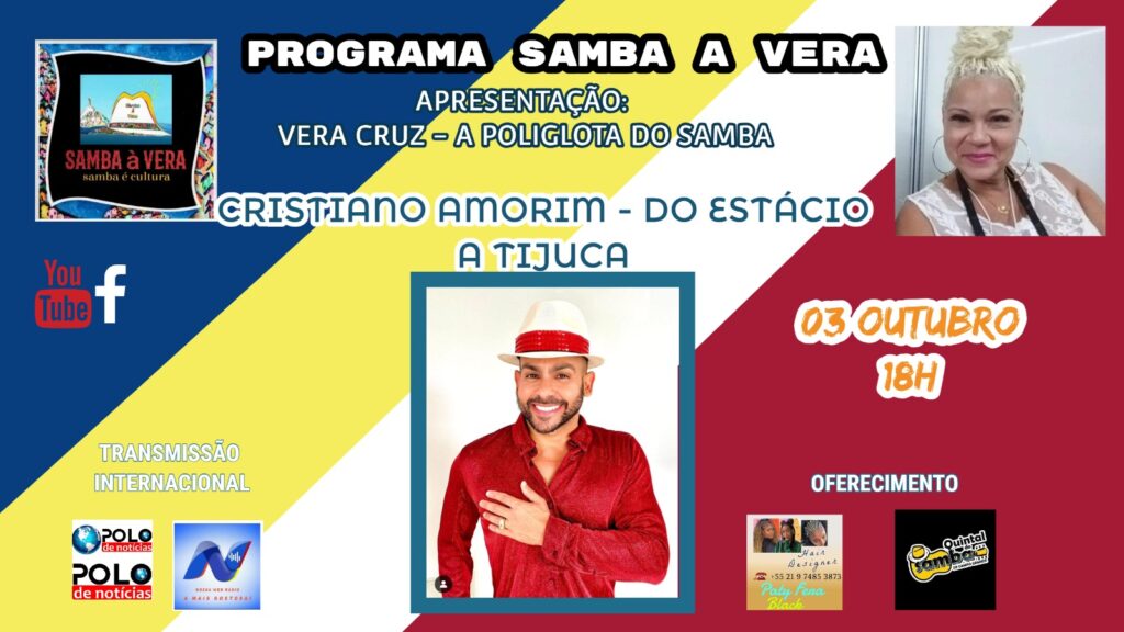 Em 3 de outubro de 2024, o Programa Samba à Vera terá o prazer de trazer na telinha o passista, diretor, Rei do Carnaval de Estocolmo e Muso Cristiano Amorim.