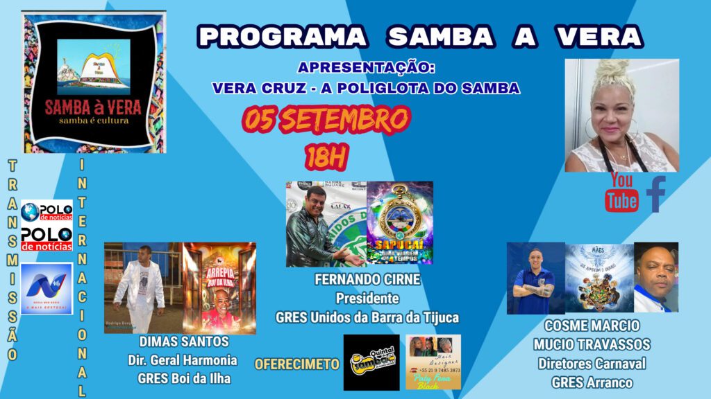 Production and presentation of Vera Cruz – The Samba Polyglot, technical production by Dedé Araújo and Igor Cruz and broadcast by Rádio e TV WEB Nossa FM in São Paulo, Polo de Notícias TV and Vera Cruz’s social networks.